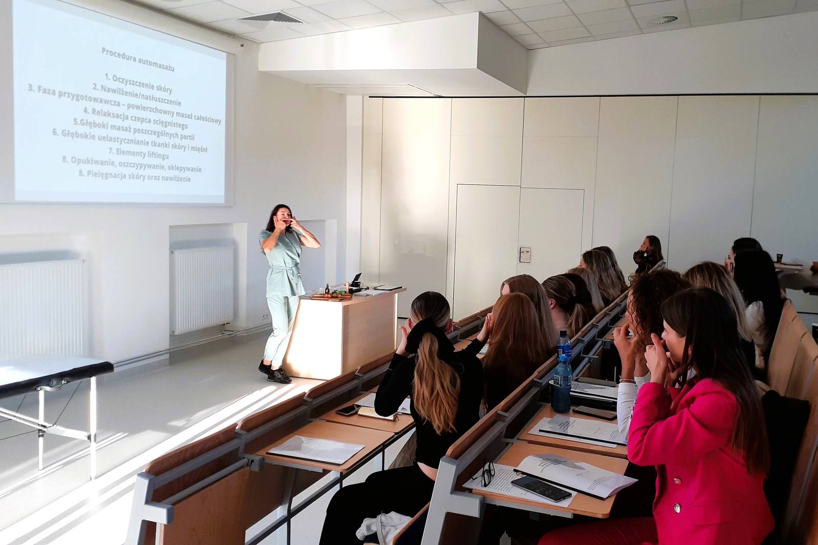Studentki zgłębiały swoją wiedzę poprzez udział w prezentacjach, wykładach, panelach dyskusyjnych oraz warsztatach. Udział w Kongresie był znakomitą okazją do poszerzenia wiedzy z zakresu problematyki kosmetologii holistycznej i stanów zapalnych skóry oraz poznania najnowszych trendów w kosmetologii, a także perspektyw rozwoju zawodowego.