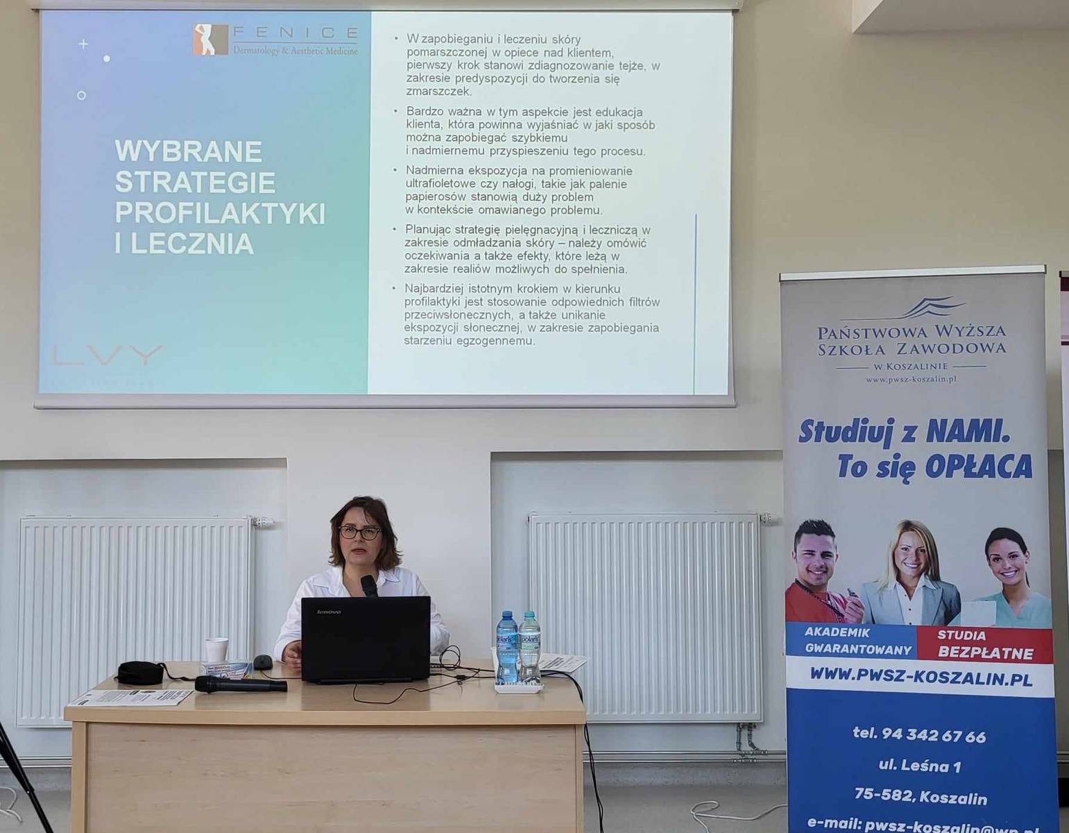 W dniu 22.05.2024r. w PWSZ w Koszalinie odbyło się w sympozjum kosmetologiczne pod patronatem prestiżowej marki Lovely Cosmetics i Fenice. Tematem tego wydarzenia było INNOWACYJNE ZASTOSOWANIE PEELINGÓW CHEMICZNYCH ORAZ STYMULACJA RECEPTORÓW SKÓRY ZA POMOCĄ FLUORESCENT LIGHT ENERGY.