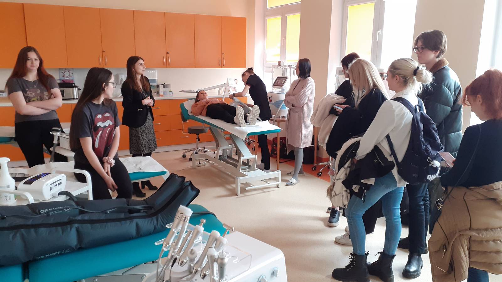Studentki dowiedziały się jak wygląda praca kosmetologa od kuchni i jakie mają możliwości rozwoju na dzisiejszym rynku pracy. Dziękujemy Pani Monice za dużą dawkę wiedzy poparta 10-letnią praktyką pracy w gabinecie kosmetologa.
