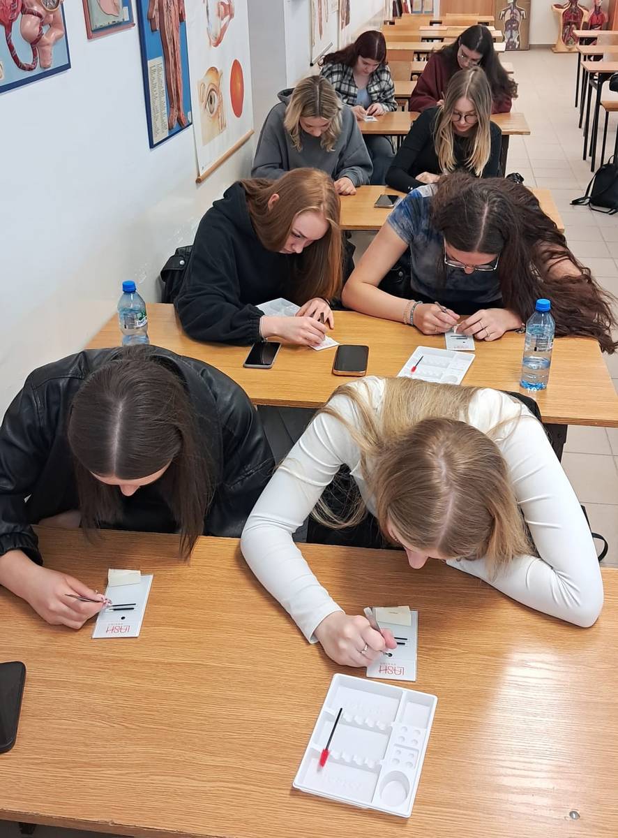 Ciekawy wykład zwieńczyły zajęcia praktyczne, podczas których przyszłe kosmetolożki zapoznały się z pracą stylistki rzęs wykorzystując do tego sztuczne rzęsy.
