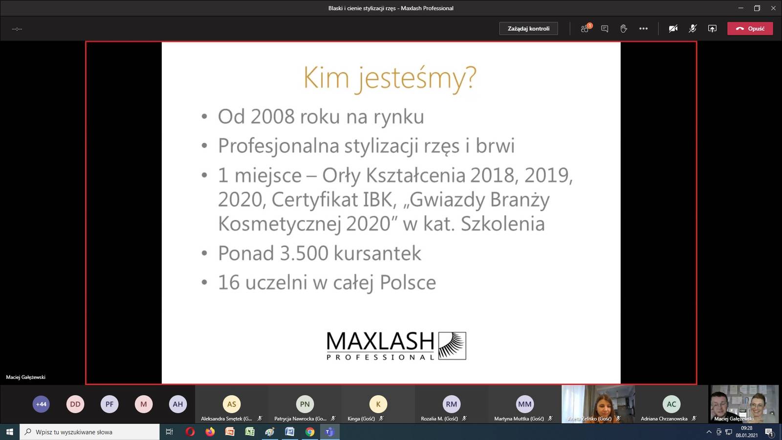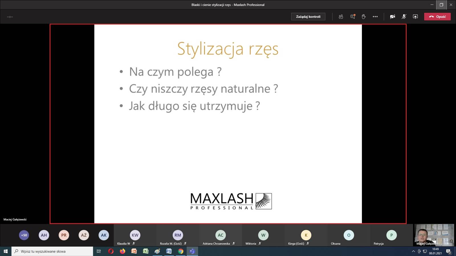 Webinar prowadzić będą przedstawiciele firmy Maxlash Professional, główni styliści: p. Kasia i p. Maciej, którzy opowiedzą o poprawnym wykonaniu zabiegów stylizacji rzęs, najczęściej popełnianych błędach, konsekwencjach zbyt mocnych stylizacji, braku higieny, dłubania etc. Nie zabraknie dyskusji o cenach rynkowych, obsłudze klienta, typowych i nietypowych zachowaniach klientek i recepcie stylistek rzęs na sukces. Na koniec przygotowaliśmy dla Was sporo niespodzianek.
