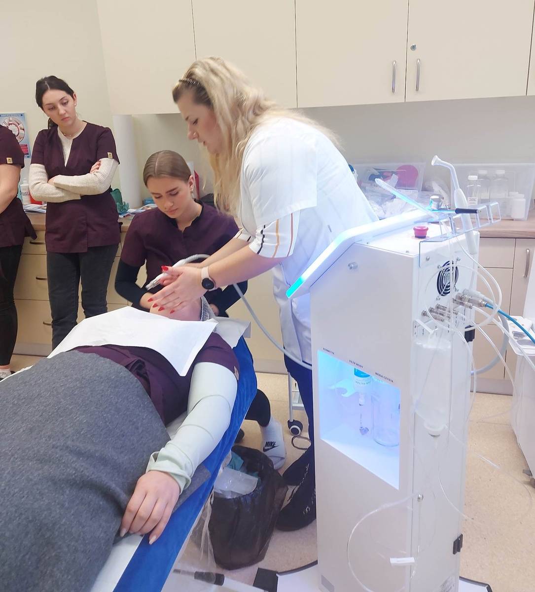 Zajęcia praktyczne na kierunku kosmetologia idą pełną parą. Studentki 2 roku w ramach zajęć z aparatury kosmetycznej u mgr Anety Żelisko zapoznały się z procedurą oraz praktycznie wykonały, zabieg oxybrazji, peelingu kawitacyjnego oraz mikrodemabrazji.