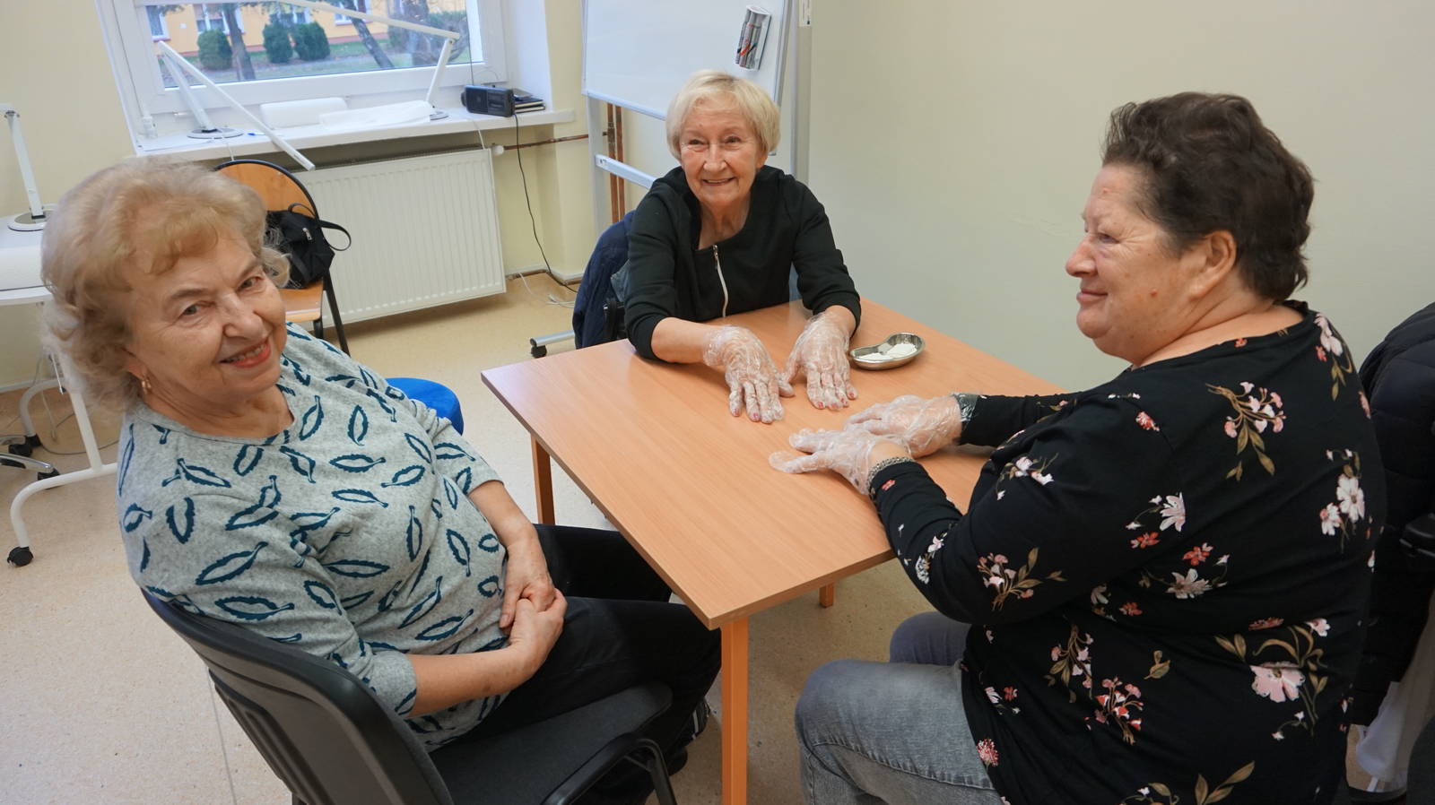 Zabiegi pielęgnacyjne twarzy i dłoni w ramach zajęć "Kosmetologia Pielęgnacyjna" z mgr Magdalena Mielniczuk Goncalves - w roli modelek Słuchaczki UTW PWSZ w Koszalinie