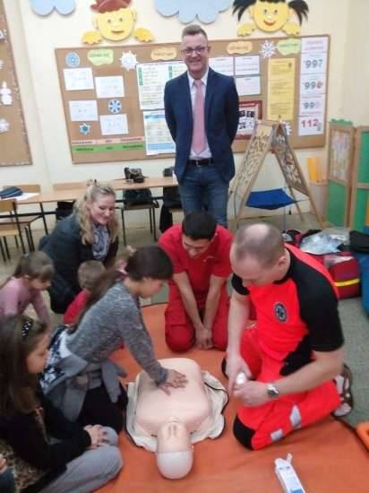 Zajęcia miały na celu poprawę bezpieczeństwa i świadomości młodzieży w dziedzinie udzielania pierwszej pomocy przy użyciu urządzenia AED.