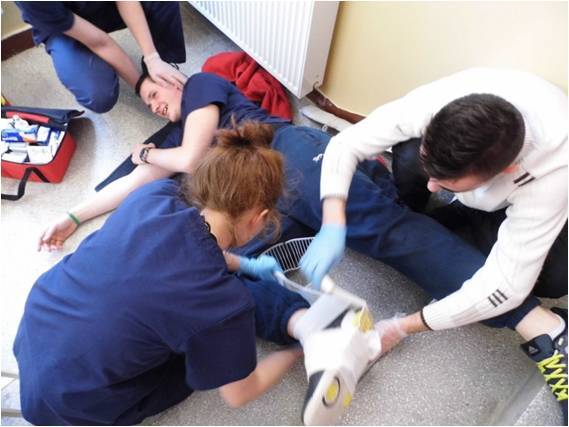 Zadaniem studentów była jak najszybsza pomoc poszkodowanym, z zachowaniem zasad bezpieczeństwa.