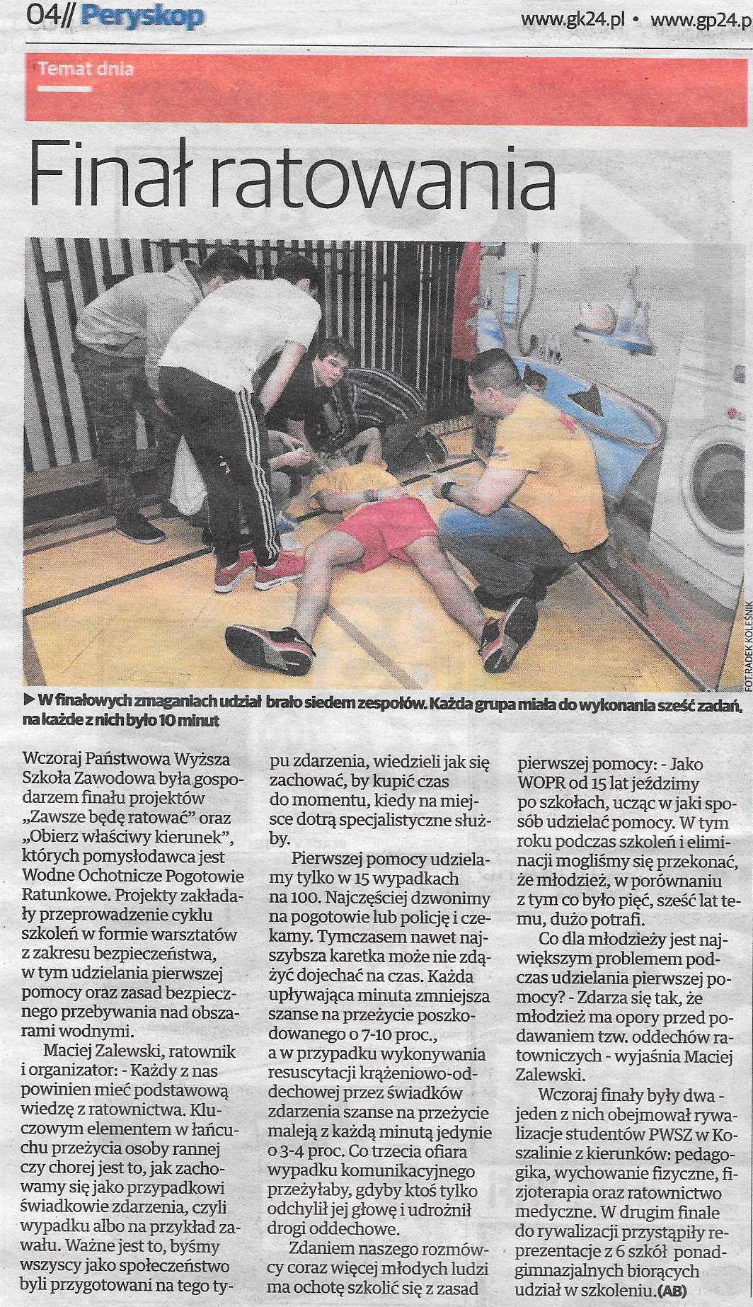 W dniu 15 grudnia 2016r. w PWSZ w Koszalinie odbył się finał projektu „Zawsze będę ratować” zorganizowany przez zachodniopomorski WOPR.