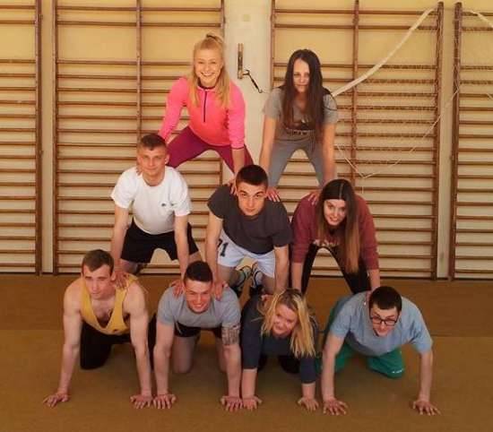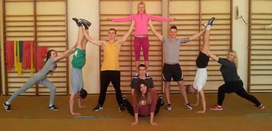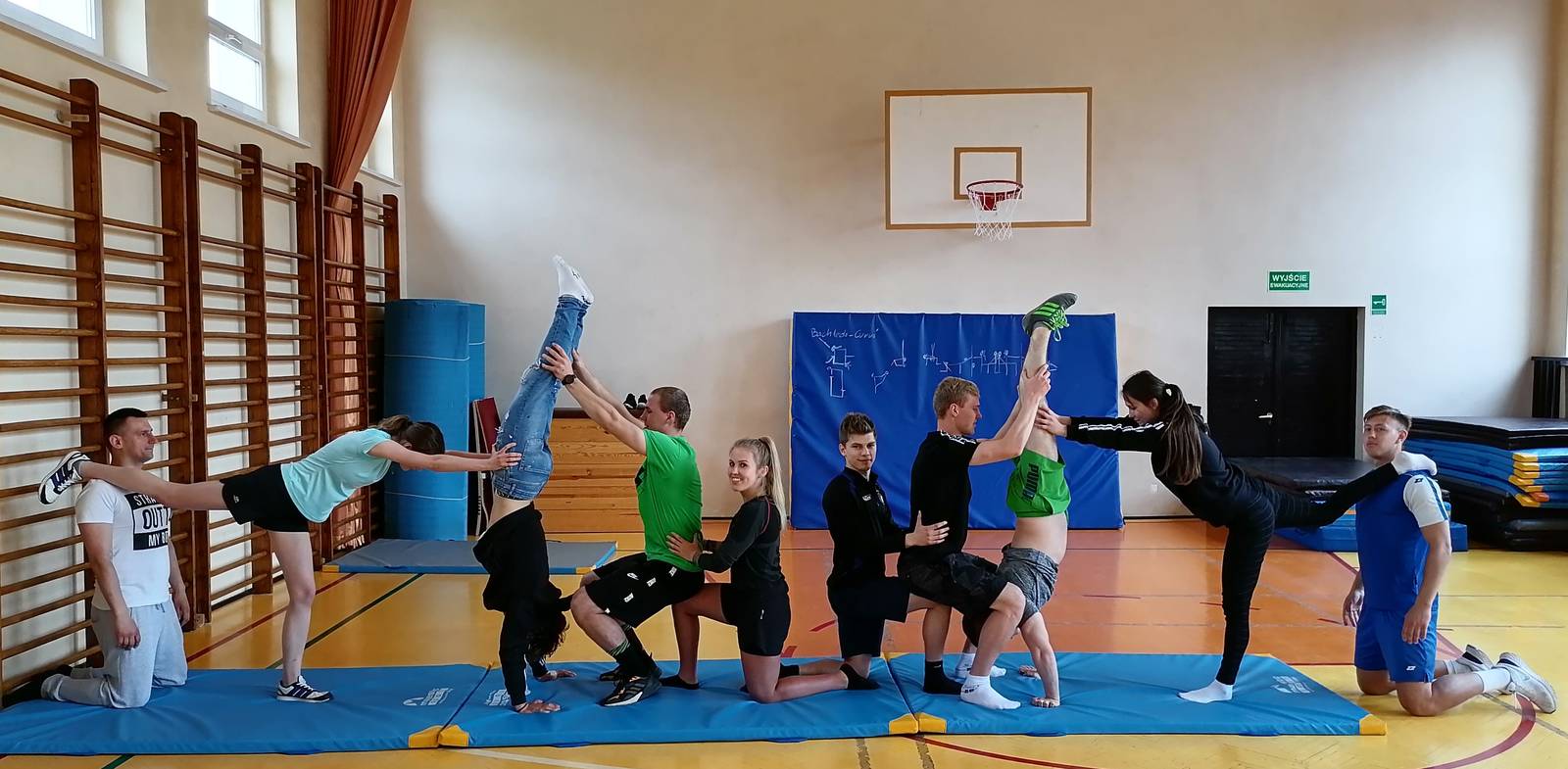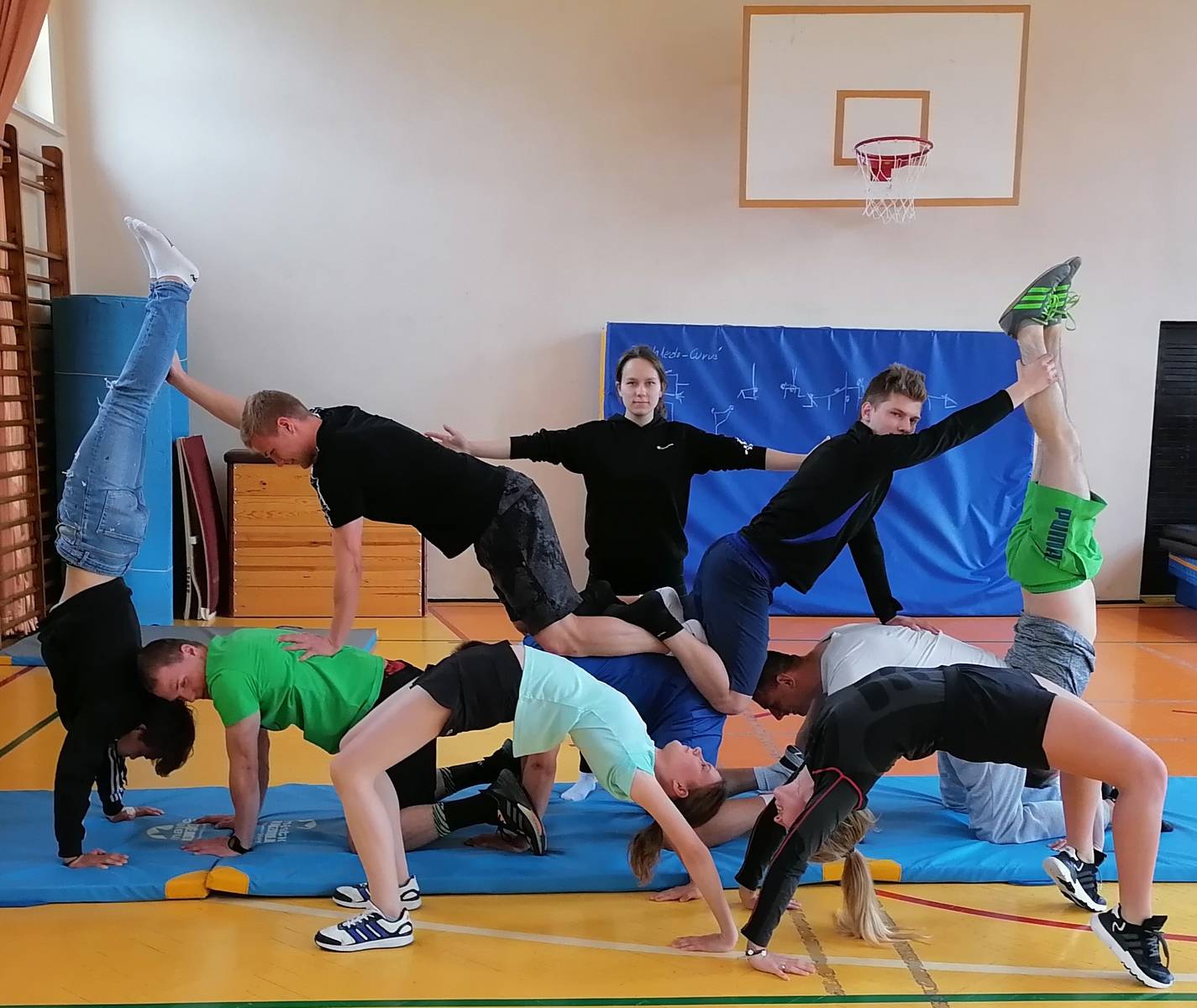 Akrobatyka widowiskowa w wykonaniu studentów 1 roku WF - zajęcia z gimnastyki z dr Tomaszem Jędrzejczakiem :)