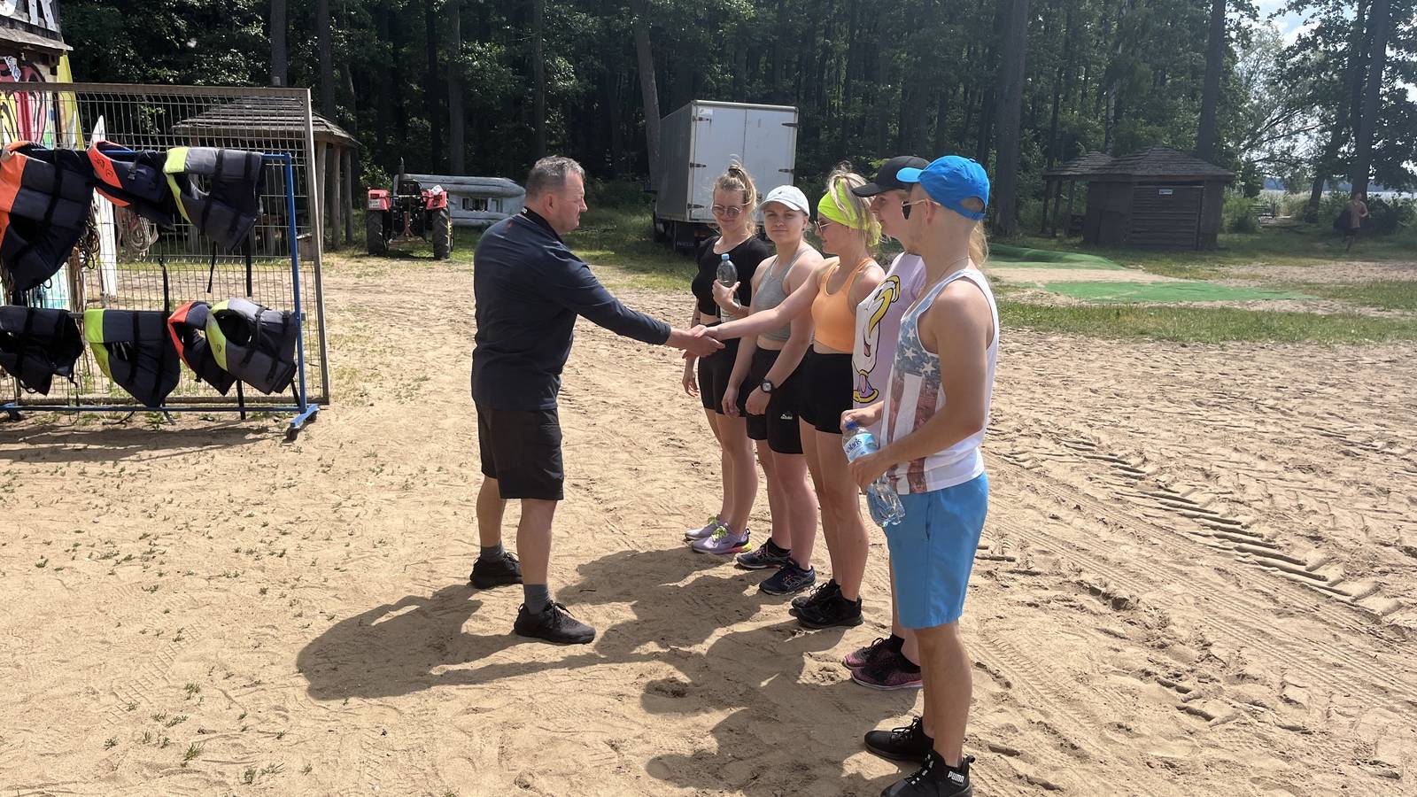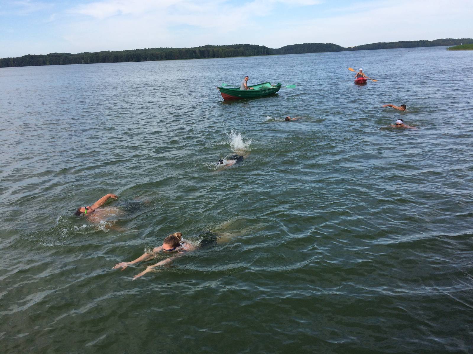 Zwieńczeniem obozu był sprawdzian sprawnościowy w formie triatlonu, który obejmował trzy konkurencje: pływanie, kajakarstwo oraz bieg. Sprawdzian miał na celu nie tylko weryfikację zdobytych umiejętności fizycznych i kondycyjnych, ale również promowanie zasad zdrowej rywalizacji i ducha sportu. Wszyscy uczestnicy z powodzeniem ukończyli triatlon, wykazując się wysokim poziomem zaangażowania, determinacji oraz umiejętnością radzenia sobie w warunkach wysiłku wielozadaniowego.