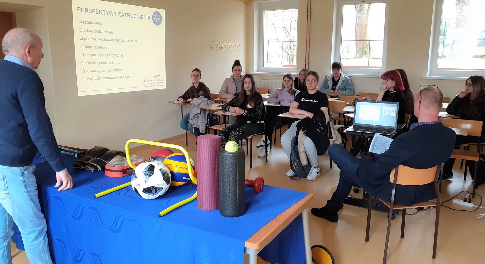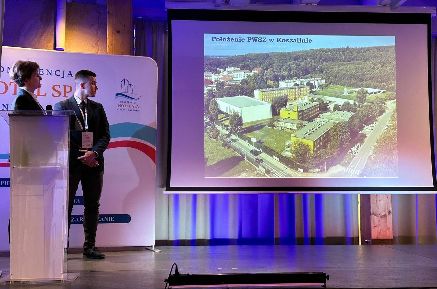 Podczas konferencji wystąpienie nt. „Kształcenia studentów w zawodach branżowych” przedstawiła dr Małgorzata Guzińska i student 3 roku #WychowanieFizyczne Mateusz Jęcek, którzy zaprezentowali ofertę kształcenia PWSZ w Koszalinie i kierunki bezpośrednio związane z branżą – wychowanie fizyczne, fizjoterapię, kosmetologię, dietetykę.