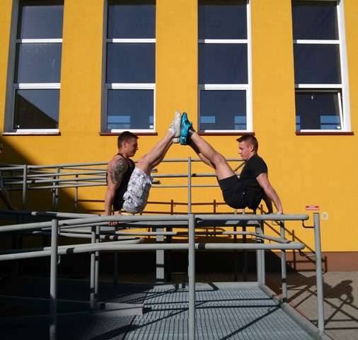 Tak wyglądają ćwiczenia na zajęciach z przedmiotu "Gimnastyka sportowa" z dr Tomaszem Jędrzejczakiem, w wykonaniu studentów 1 roku wychowania fizycznego. Figury oczywiście na zaliczenie...Tylko pozazdrościć sprawności!