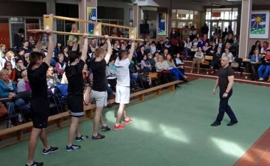 Pokaz gimnastyczny w wykonaniu wykładowcy PWSZ dr Tomasza Jędrzejczaka