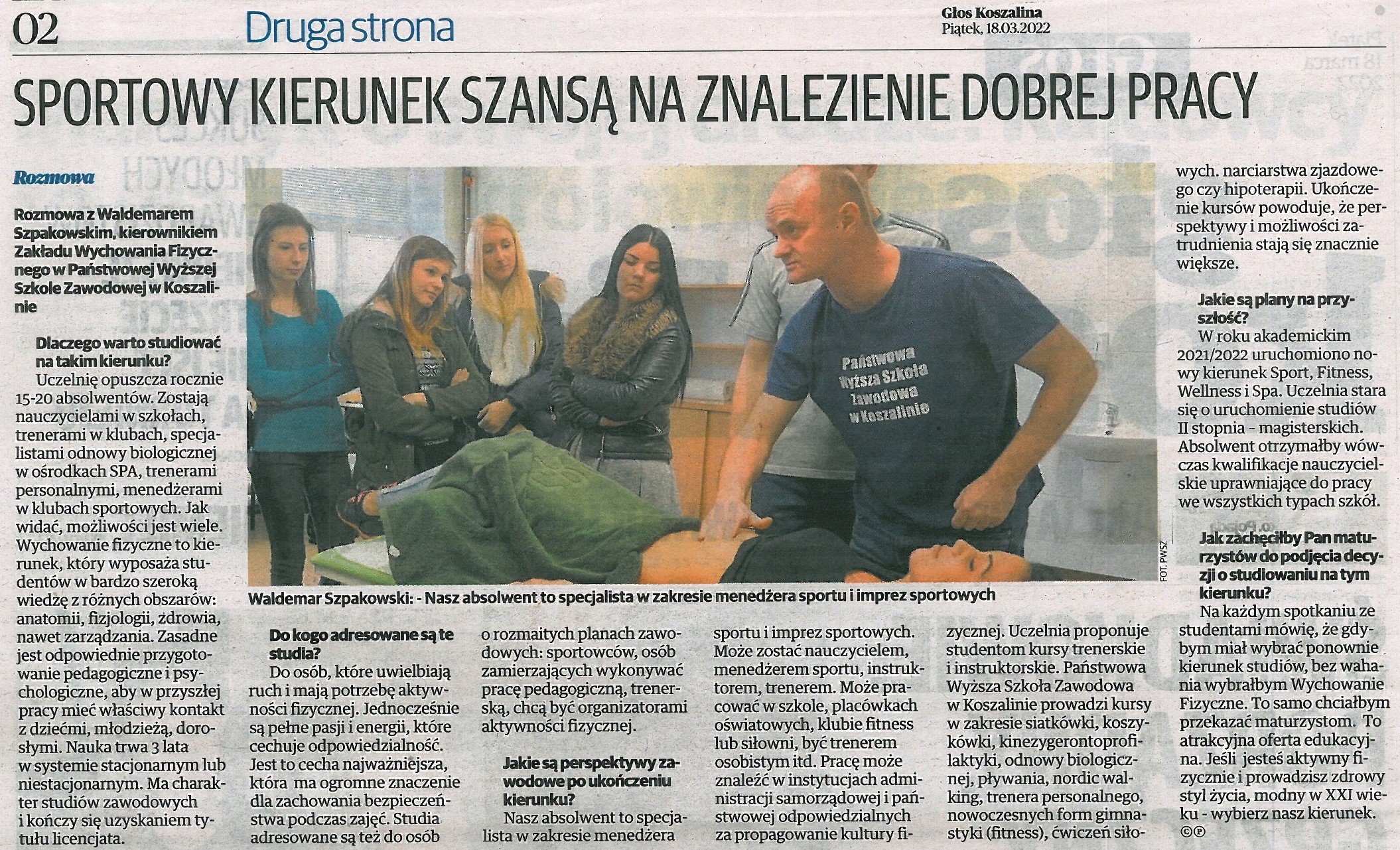 Wywiad z Kierownikiem Zakładu WF - Waldemarem Szpakowskim - Głos Koszaliński -18.03.2022