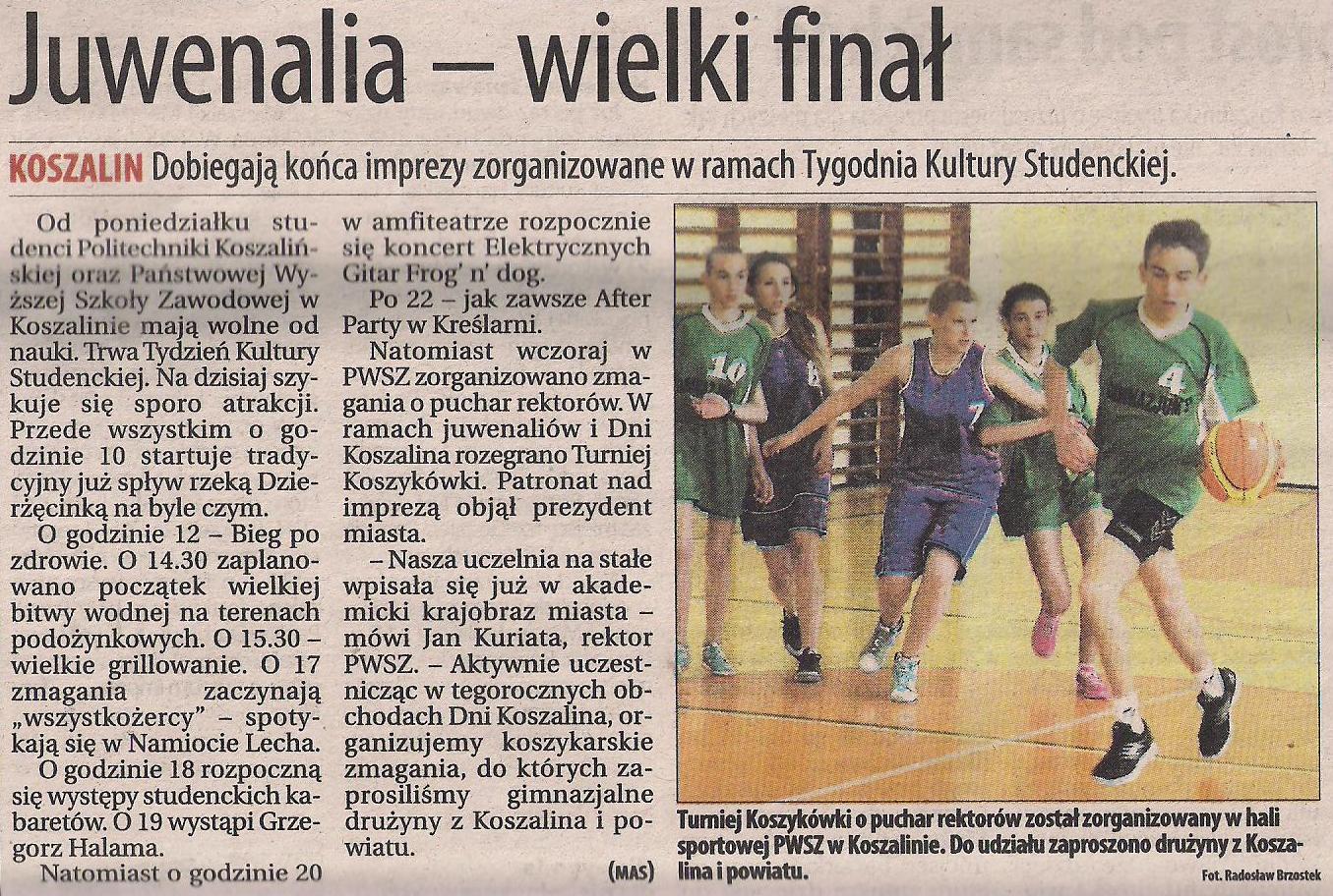 "Turniej koszykówki o Puchar Rektora PWSZ" - "GK" z dn.25-26.05.2013r.